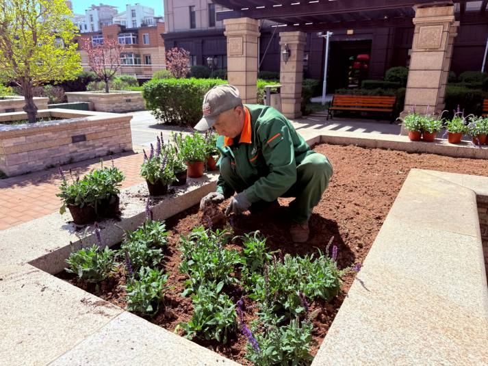 为了确保每一株植物都能以最佳状态迎接业主们的目光,我们的绿化团队特别制定了周密的补植、养护计划。从清晨的第一缕阳光到夜晚的最后一丝余晖,他们都在细心照料着每一寸绿地。无论是补植、补种、浇水、松土,还是监测植物的生长状况,每一项工作都执行得细致入微。
