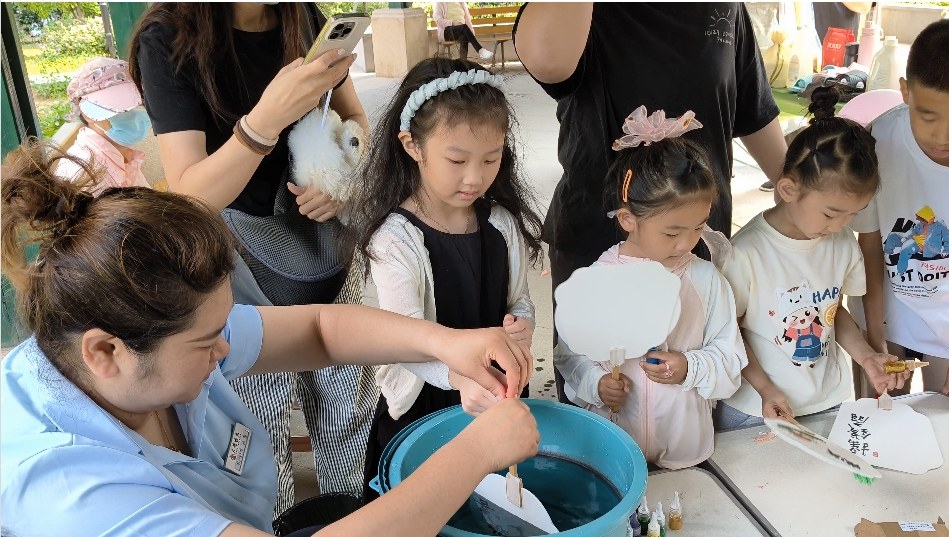 DIY 漆扇区里,孩子们调好颜色,把空白扇放进桶里,家长们在旁协助,一幅幅充满创意的作品陆续诞生。嘉年华区域则充满欢声笑语,射箭、彩绘风筝等经典游戏让孩子们尽情嬉戏,物业还准备了精美小礼品。业主们表示,活动让孩子们度过了欢乐时光,也增进了邻里情谊,感受到社区的温暖氛围。